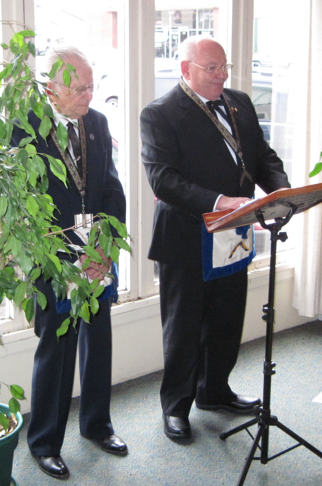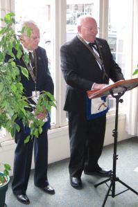 The event was preformed under dispensation to wear Masonic Regalia and was officiated by Acting Master Jim Widdoes PM and Chaplain Jay Grunert PM. The theme of Jim’s presentation was rememberance and renewal and Jay delivered one of his special prayers. The event was attended by eighty church members and brethren. Pictured L – R: Jay Grunert, Jim Widdoes.